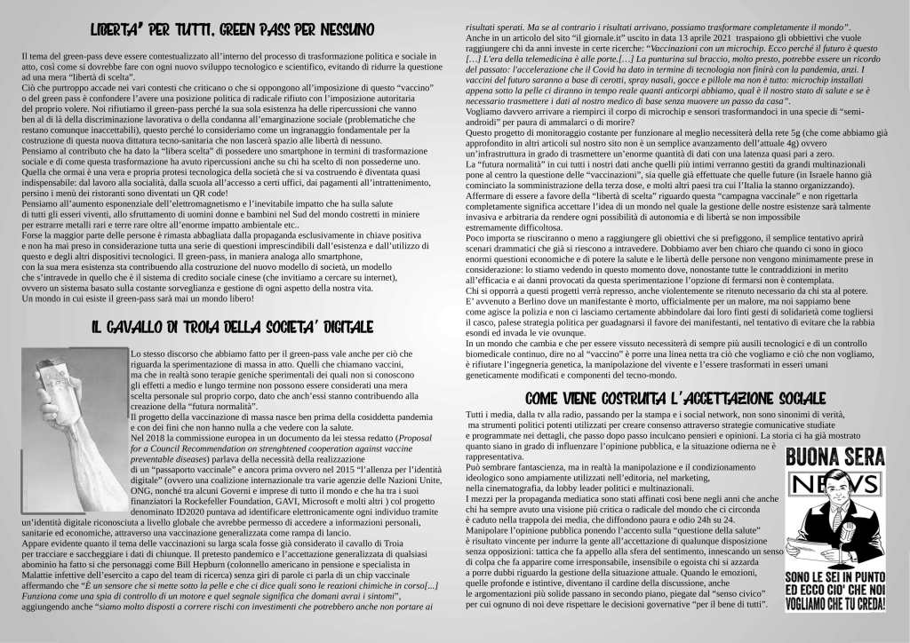 IL CONTAGIO CHE TEMONO è QUELLO POLITICO – Testo del pieghevole contro il green-pass