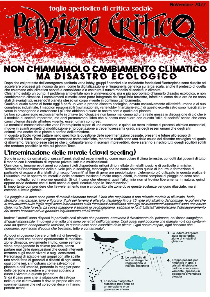 Il disastro ecologico in corso a livello globale ha un impatto crescente e devastante sugli ecosistemi e su tutti gli esseri viventi. I governi mondiali e le lobby industriali e militari cavalcano mediaticamente la catastrofe con false soluzioni, continuando a sfruttare il pianeta. In Italia in particolare, la spinta alla rinascita nucleare tenterà di cancellare la storia delle opposizioni popolari che dagli anni’70 sono state portate avanti con lotte sul campo. Nonostante tali percorsi di lotta le pressioni dell’industria nucleare sul mondo politico non si sono mai fermate. Allo stato attuale, ritenendo che sia un contesto maturo per un consenso generalizzato di questa nocività, la propaganda esce dalle convention di settore e si traveste da informazione generalista, costellata da omissioni e manipolazioni dei dati, che compare a più riprese nei programmi scolastici, sui quotidiani, sui social e nei canali online puntando soprattutto ai giovani. Nel frattempo le università non smettono di sfornare laureati in ingegneria nucleare, mentre le aziende si tengono al passo con investimenti nelle centrali estere e coi reattori sperimentali usati su suolo italico. Non si può dimenticare che ogni tecnologia, oltre ad essere il prodotto della società che la produce, diventa trasformatrice della società stessa: vale anche per l’energia nucleare. Le nuove centrali, fuori da ogni retorica green, non soppianteranno i combustibili fossili, ma serviranno per sopportare e supportare i crescenti consumi delle infrastrutture dietro la digitalizzazione e l’intelligenza artificiale.