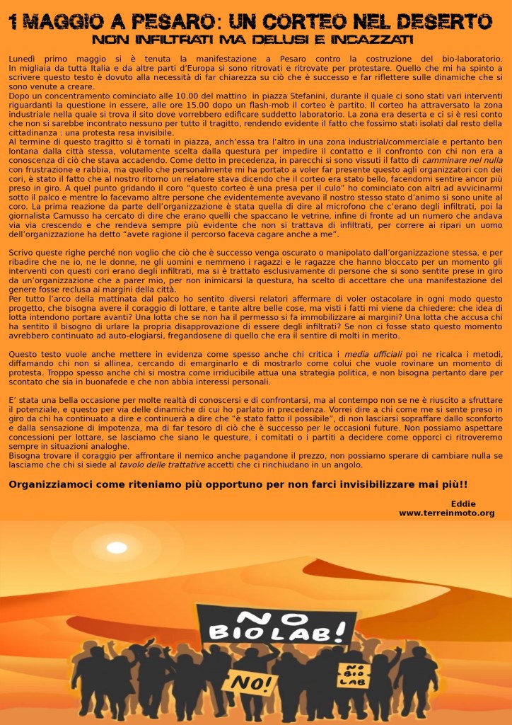 Comunicato a seguito della manifestazione del primo Maggio a Pesaro